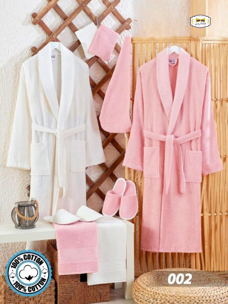 طقم أرواب استحمام تركي مزدوجة صُنعت من القطن الفاخر بألوان مميزة تمنحك الشعور بالدفء بعد الاستحمام.