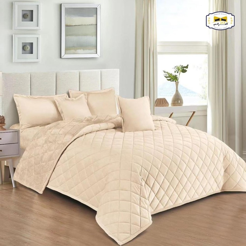 يقدم لك هذا المفرش تجربة نوم لا تُنسى، حيث يجمع بين فخامة الفرو الأرنب الداخلي وجمال المخمل الخارجي.
